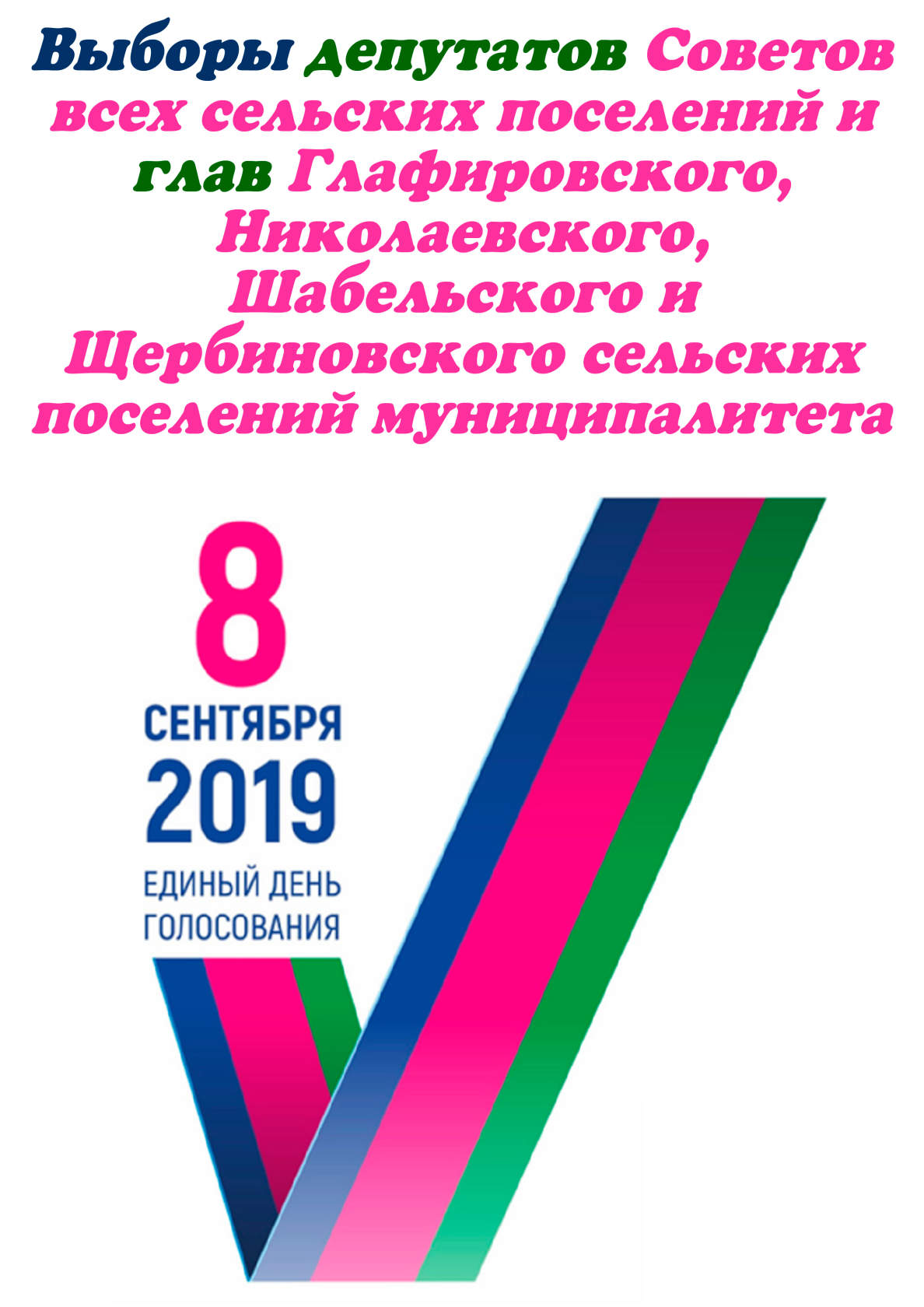 8 сентября 2019 года состоятся выборы депутатов Советов всех сельских поселений и глав Глафировского, Николаевского, Шабельского и Щербиновского сельских поселений муниципалитета