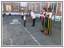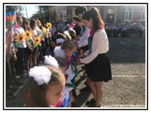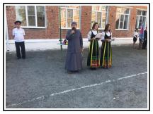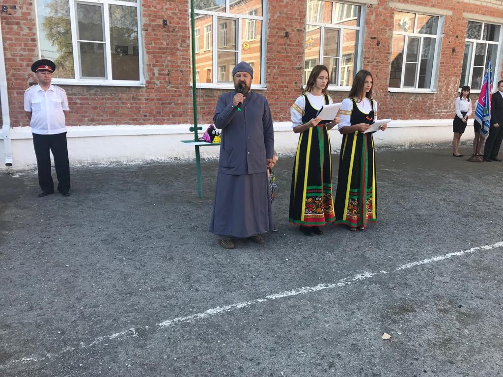 представитель казачьего общества станицы Старощербиновской - Галкин В.В., представитель духовенства - отец Вячеслав. В ходе праздничной линеки была проведена церемония посвящения учеников 1 А класса в казачата. Представитель казачьего общества Галкин В.В., дал наказ ребятам, пожелал им прославлять свою школу и край добрыми делами и хорошей учебой, а представитель духовенства, отец Вячеслав, пожелал ребятам все дела творить с верой и надеждой в душе, как истинные казаки. Первоклассники дали клятву, после чего учащиеся 9 Б класса казачьей направленности повязали первоклассникам галстуки.