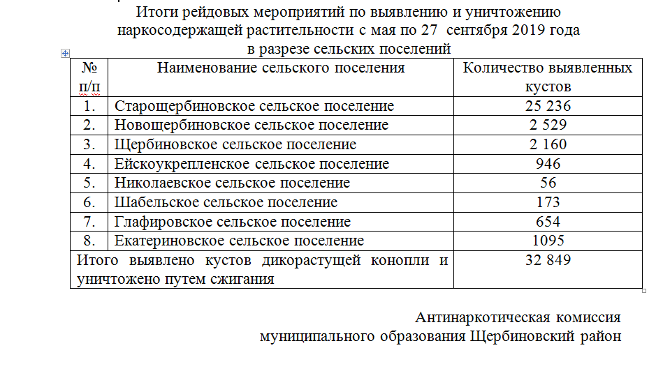 На территории района закончилась межведомственная оперативно-профилактическая операция «Мак-2019». Мобильными группами по мониторингу и уничтожению наркосодержащих растений на территории сельских поселений Щербиновского района проводились рейдовые мероприятия, направленные на выявление незаконных посевов и дикорастущих очагов наркосодержащих растений совместно с участковыми уполномоченными полиции ОМВД России по Щербиновскому району и казачеством.