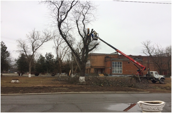 В Новощербиновском сельском поселении идёт обрезка деревьев