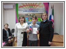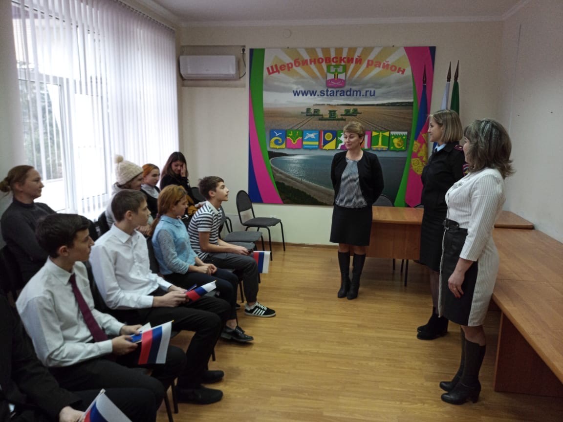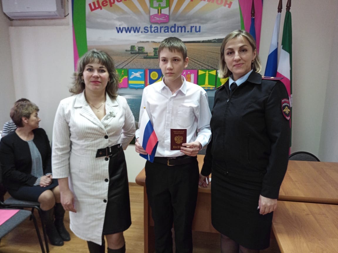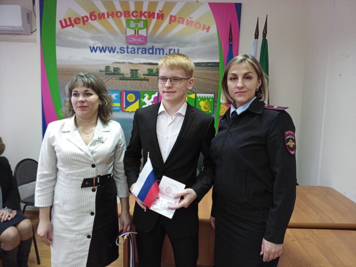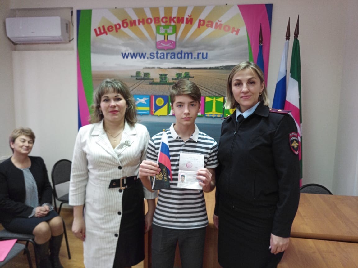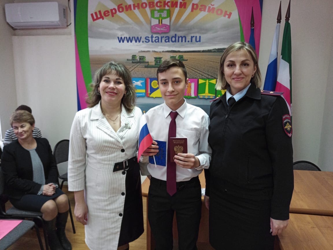 Шесть юных щербиновцев в торжественной обстановке получили свои первые паспорта из рук начальника отделения УФМС по Щербиновскому району . Гостями мероприятия стали: начальник отдела по делам несовершеннолетних Валентина Ивановна Гришко и родители ребят.