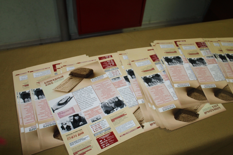 Активом студенческого самоуправления был подготовлен тематический час общения «Живая история: Хлеб в блокадном Ленинграде» – в завершении каждый студент и сотрудник техникума получил из рук волонтеров хлебную карточку и символический кусочек хлеба, весом в 125 гр., а юнармейцы всем участникам мероприятия выдали тематические памятки о блокадном хлебе и фактах истории страшных событий блокадного Ленинграда.