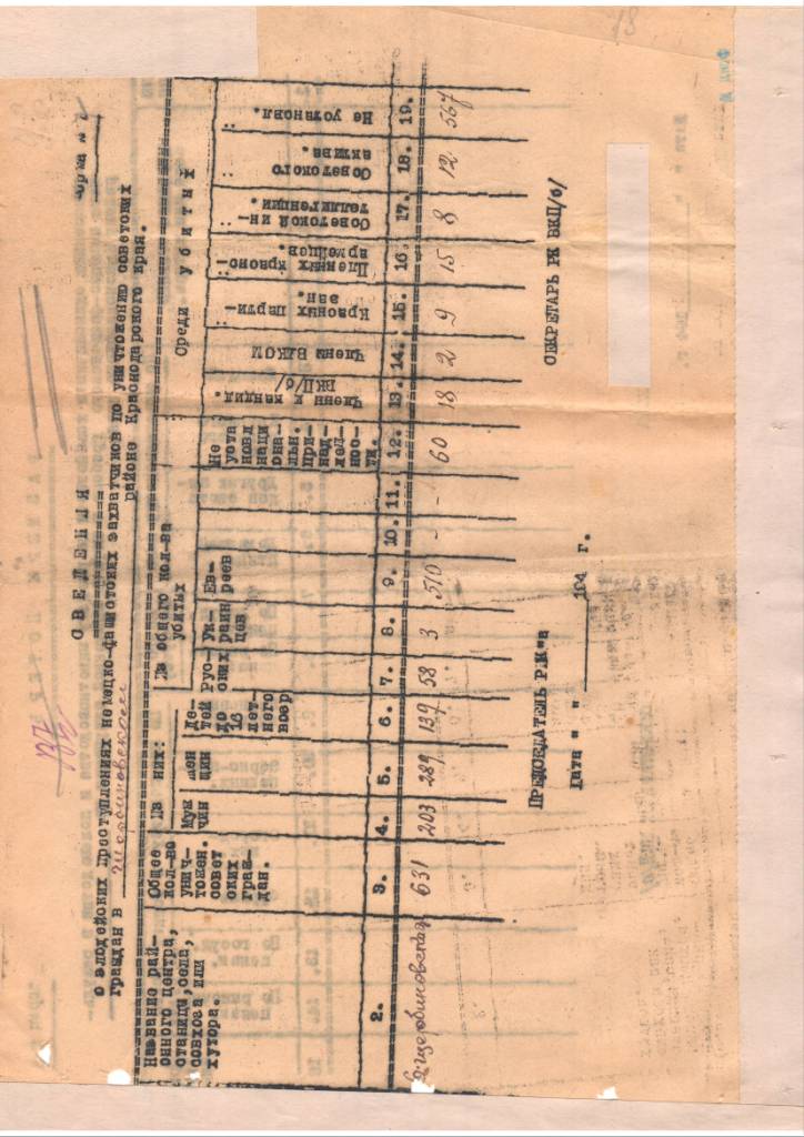 архивного фонда «Коллекция документов по истории Щербиновского района Краснодарского края» (ф.Р-107, оп.4, д.6, 7, 33; ф.Р-107, оп.12, д.10);