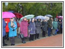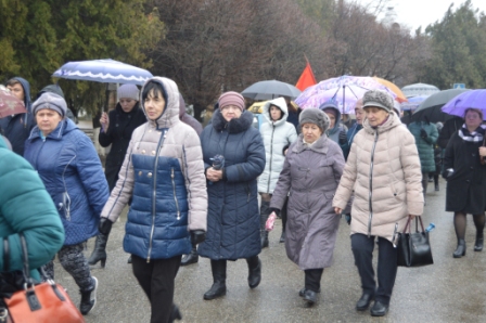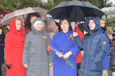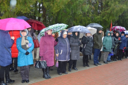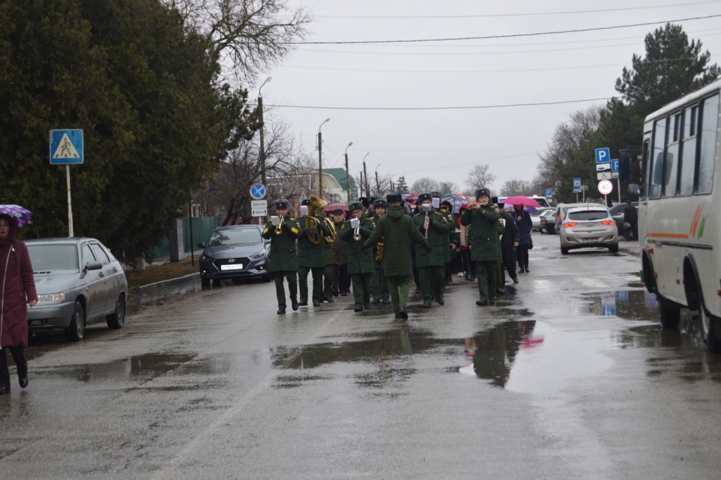 Под сопровождение Ейского военного духового оркестра колонна жителей станицы прошла к мемориальному комплексу, где состоялось торжественное возложение цветов и венков к Вечному огню. «Сегодня в районе проживают 8 участников Великой Отечественной войны. Особые слова благодарности мы адресуем нашим дорогим ветеранам. Низкий поклон Вам дорогие, за то, что в годы суровых испытаний Вы не щадили себя во имя высокой цели. 2020 год, объявленный годом Памяти и Славы, отмечен значимым событием- 75-летием Великой Победы. Давайте же помнить о том, что в мире нет ничего более страшного и противоестественного, чем война. Мы обязаны ценить то благо, которое отстояли для нас наши деды и прадеды. Давайте же искренне, сердечно и внимательно относиться славному боевому прошлому нашего народа, истории нашей замечательной земли»,- отметил в своём выступлении глава райоан Сергей Цирульник.