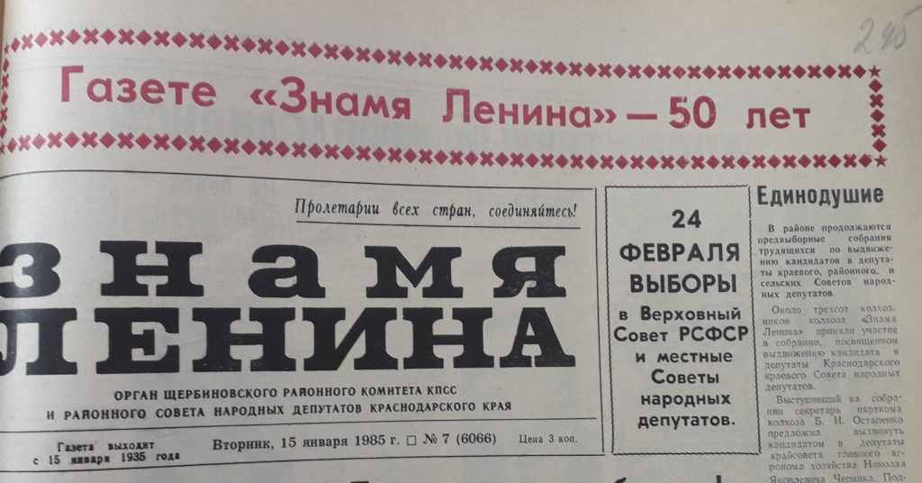 Использованы документы архивного фонда Р-102 «ООО «Редакция газеты «Щербиновский курьер».