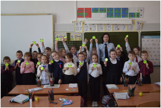 В заключение урока малыши сделали вывод, что правила дорожного движения знать и ежедневно соблюдать необходимо, чтобы избежать несчастных случаев, а также приняли от инспектора в подарок световозвращающие элементы.