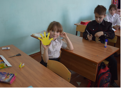 В рамках декады дорожной безопасности детей, учащимися школы изготовлены ладошки для водителей