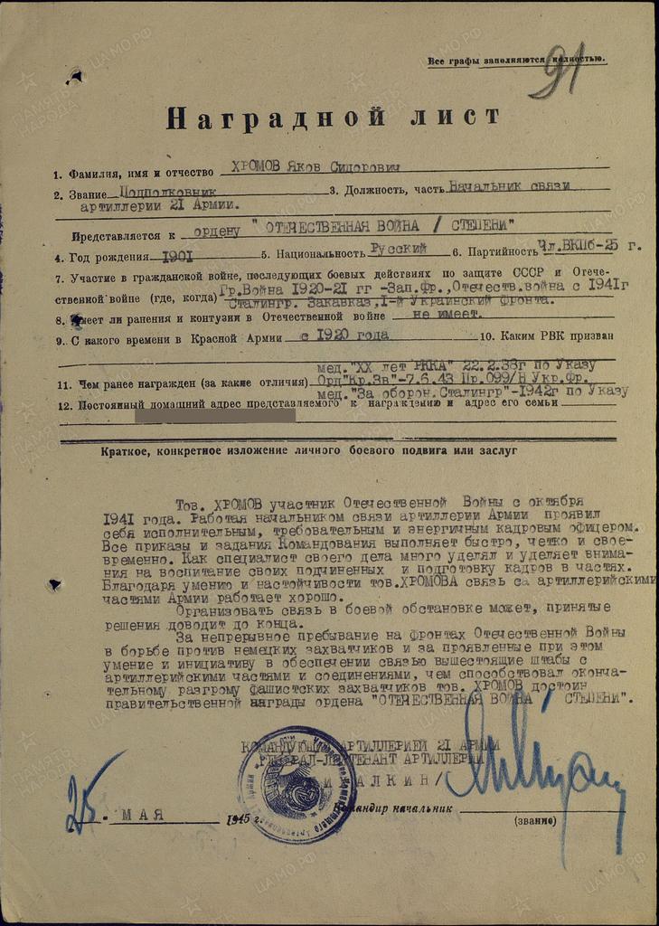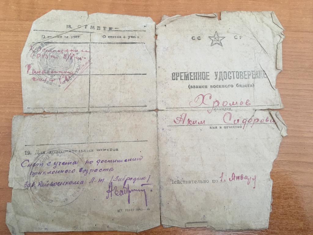 О судьбе Николая стало известно 22 августа 1978 года. Петр самый младший ребенок в семье, работал на тот момент в военкомате в Тюмени, и сделал запрос в Центральный архив министерства обороны СССР откуда получил ответ, что рядовой Хромов Николай Акимович был убит 26 октября 1942 года, и захоронен в станице Котлубань, Сталинградской области.