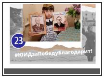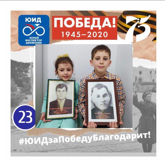 9 мая наша страна отмечает самый большой праздник - 75 лет со дня победы в Великой Отечественной войне. Война не прошла бесследно, она затронула каждую семью. К сожалению, в настоящее время ЮИДовцы не могут самостоятельно посетить и поблагодарить ветеранов, а также пройтись с портретами своих прадедов «Бессмертного полка». В этом году дети поздравляют ветеранов в телефонном режиме и посредством социальных сетей, благодаря их за подаренную жизнь и мирное небо над головой.