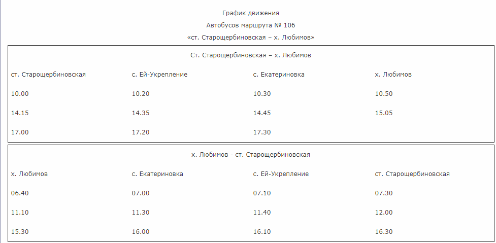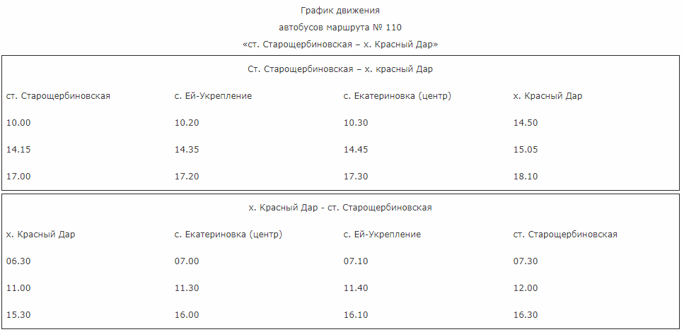 Из ст. Новощербиновской: 7:10; 12:35; 18:45.