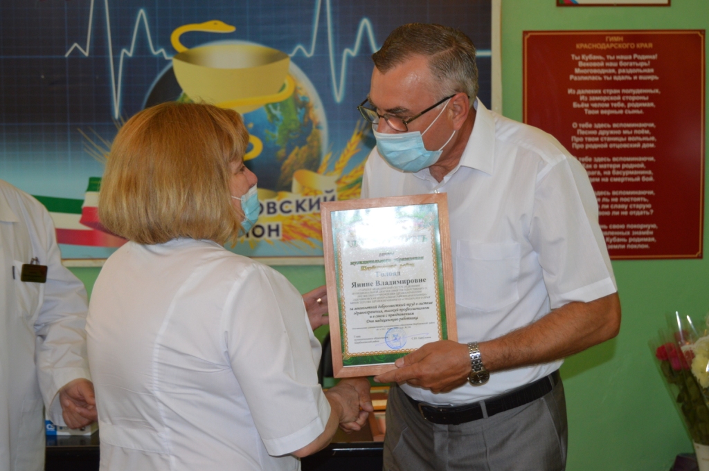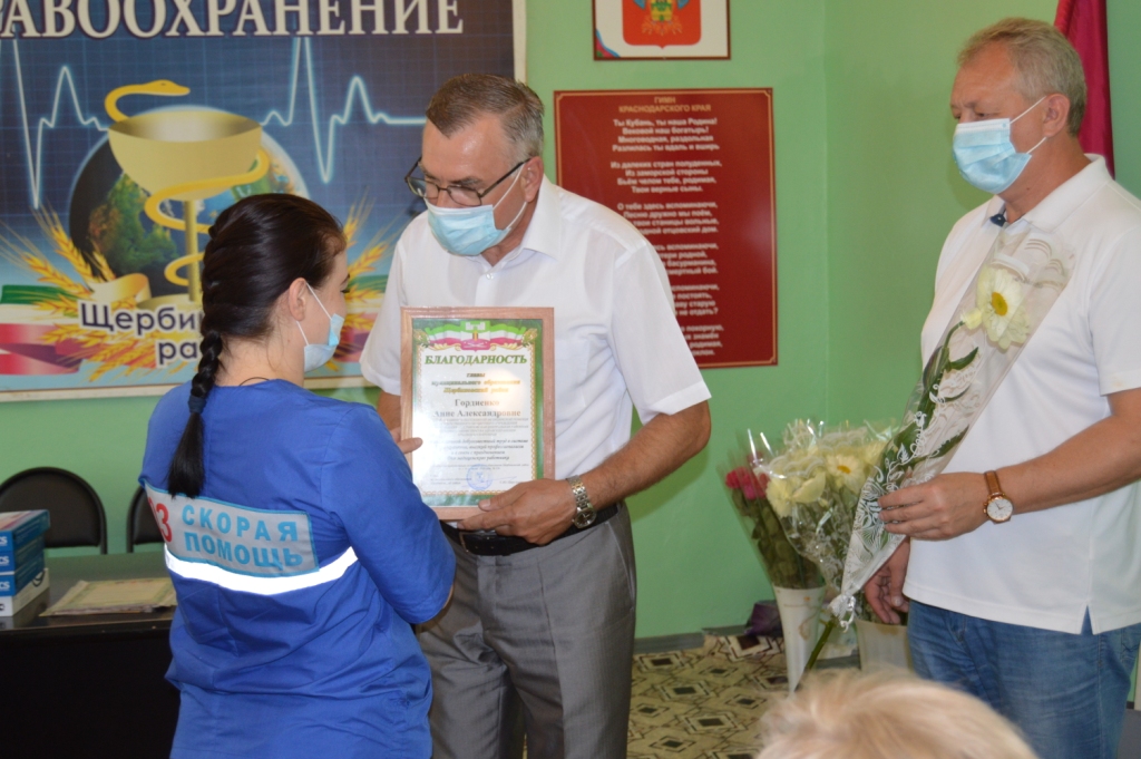 Сегодня глава района Сергей Цирульник поздравил работников и ветеранов здравоохранения Щербиновского района с профессиональным праздником- Днем медицинского работника. "В этом году мы переживаем очень непростой период для нашего региона и страны. Сегодня важнейшей задачей всех уровней власти, всего нашего общества стало сохранение жизни и здоровья людей, противодействие распространению коронавирусной инфекции. В это сложное время нагрузка на здравоохранение района выросла в разы. Сегодня поблагодарил всех работников здравоохранения района за преданность и самоотверженный труд в непростых условиях борьбы с коронавирусом. Вся страна благодарит врачей, медсестер, фельдшеров, сотрудников больниц, поликлиник, ФАПов, служб скорой помощи за круглосуточную работу в период пандемии коронавируса",- отметил в своем поздравлении глава муниципалитета. За многолетний добросовестный труд в системе здравоохранения, высокий профессионализм Сергей Юрьевич вручил медицинским работникам Благодарности главы муниципального образования Щербиновский район. Сергей Цирульник пожелал всем медицинским работникам района крепкого здоровья, успехов в благородном деле, счастья и душевного тепла в доме, комфортных условий труда, мира, добра и благополучия!