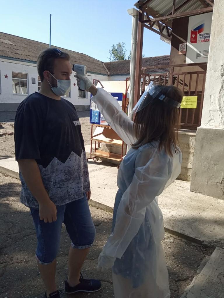 При входе в помещение для голосования всем участникам голосования бесконтактным способом измеряется температура. Все участники для голосования получают средства индивидуальной защиты – одноразовые перчатки и маски. Для заполнения бюллетеня граждане получают индивидуальные ручки.