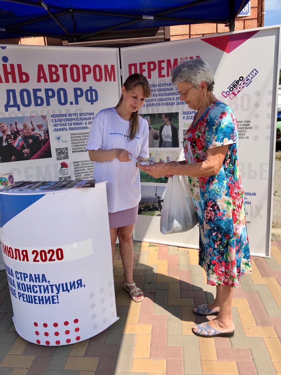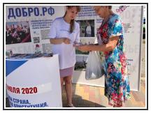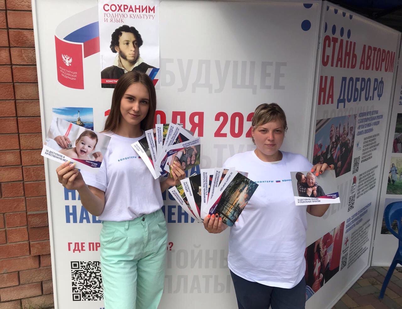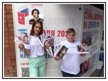 Волонтеры, которые работали на информационной стойке на рыночной площади, сейчас переместились на улицу Красную в район участковой избирательной комиссии. Они продолжают рассказывать о процедуре голосования, содержании и значимости предлагаемых поправок. Все волонтеры снабжены средствами индивидуальной защиты.