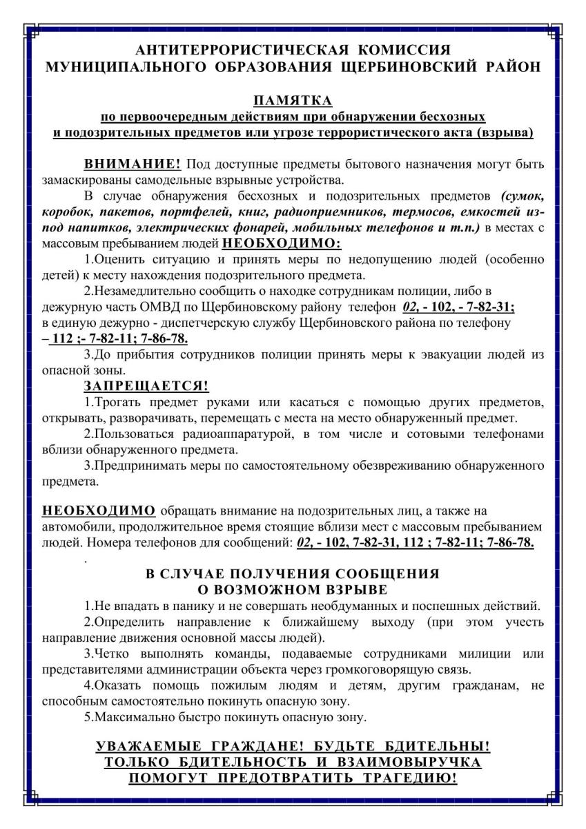 АНТИТЕРРОРИСТИЧЕСКАЯ КОМИССИЯ МУНИЦИПАЛЬНОГО ОБРАЗОВАНИЯ ЩЕРБИНОВСКИЙ РАЙОН