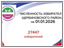 По данным ГАС «Выборы» на 1 января 2026 года на территории муниципального образования Щербиновский муниципальный район Краснодарского края зарегистрировано 27447 избирателей.